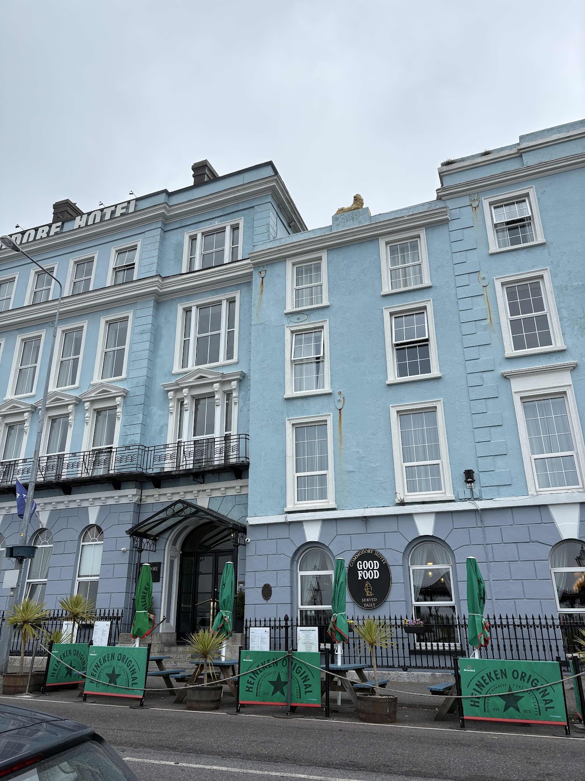 The Commodore Hotel started life as the Queens Hotel in 1854. It served an upper class clientele and was quite posh. It changed ownership a couple times before it was owned by a German named Otto Humbert. During his tenure, on May 7th 1915 the Lusitania was sunk by German u-boats. It was only 18 miles from Cobh. The hotel was pressed into service as a make-shift hospital for the survivors and as a morgue for the deceased.